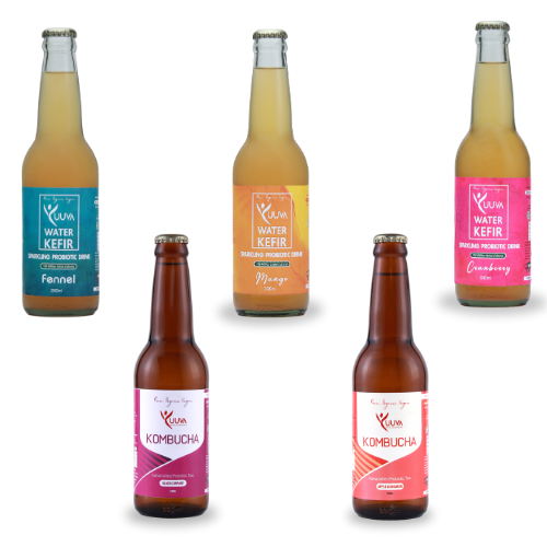 Kombucha + Water Kefir – 5 Bottle Combo (330 ml x 5)